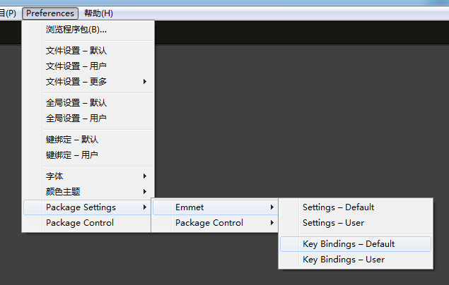 2、Sublime Text菜单中的 Preferences > Browse Packages 找到 packages/Default 目录;